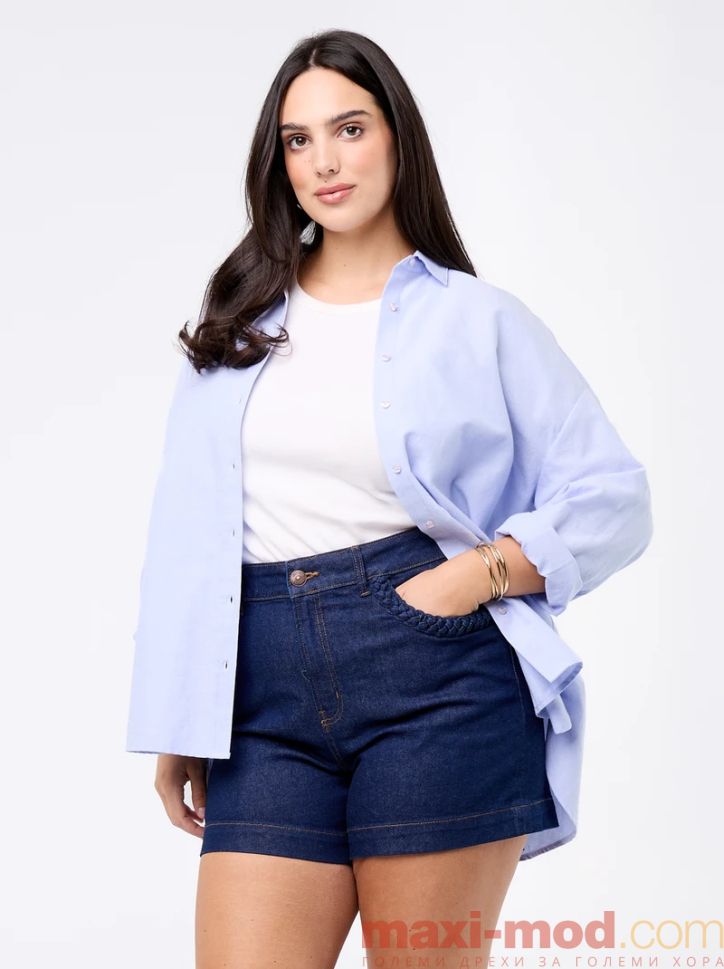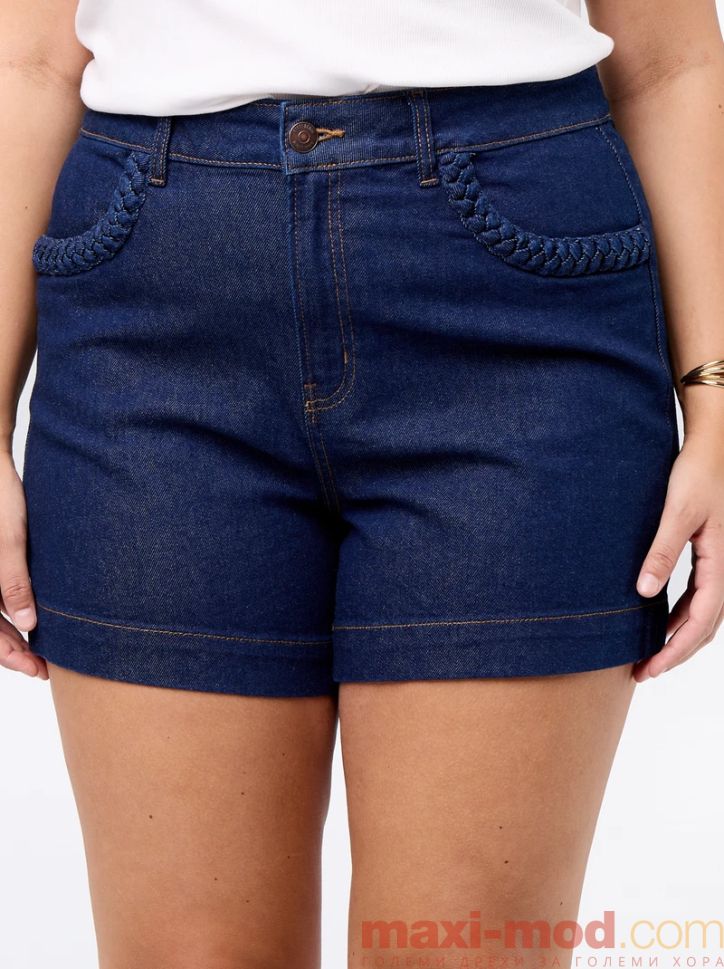 Дънкови шорти с плетени джобове. Подходящи за ежедневието и свободното време.