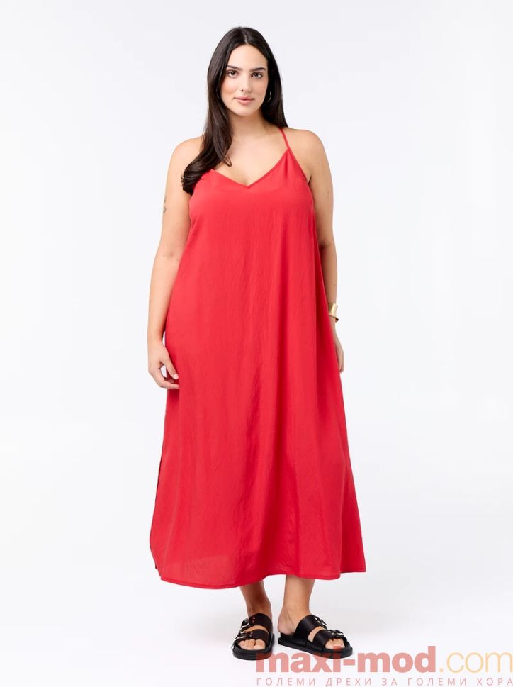 Миди рокля с регулируеми презрамки.