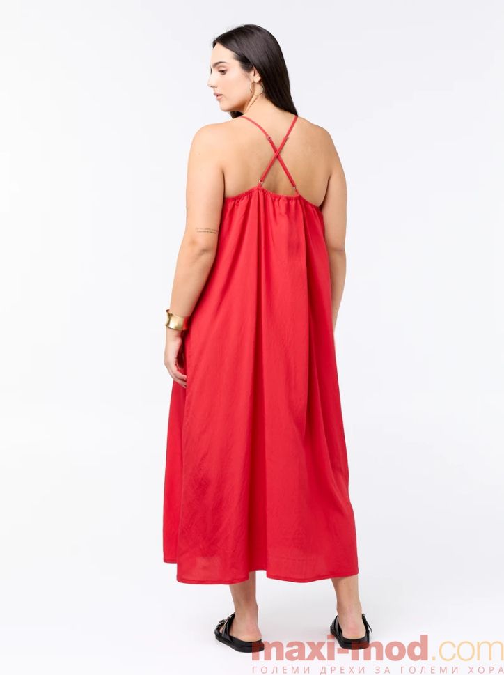 Миди рокля с регулируеми презрамки. Подходяща за ежедневието и свободното време.