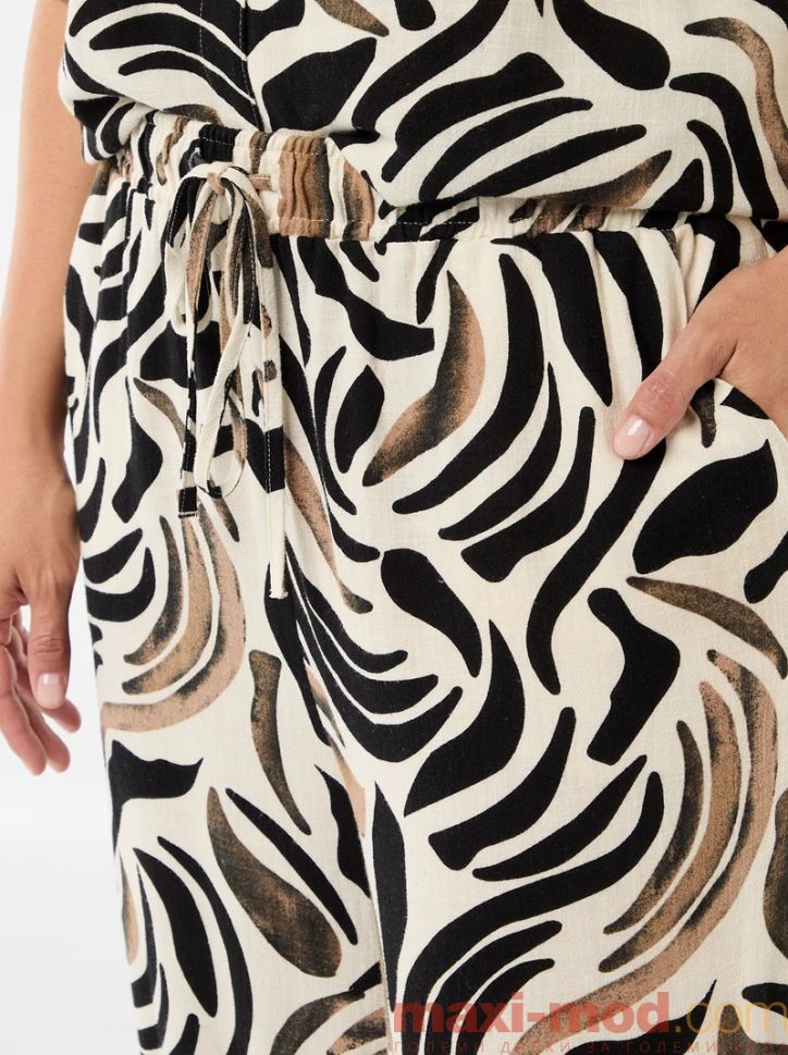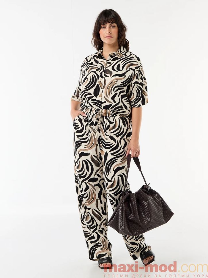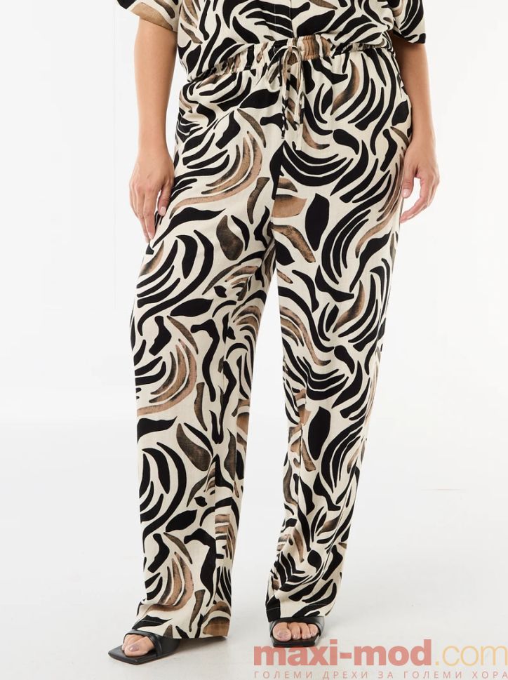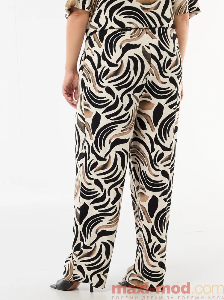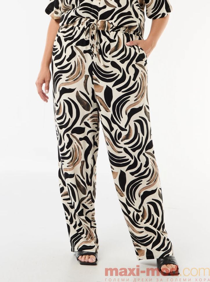 Широк дамски панталони от ленена смес . Подходящ за ежедневието и свободното време.